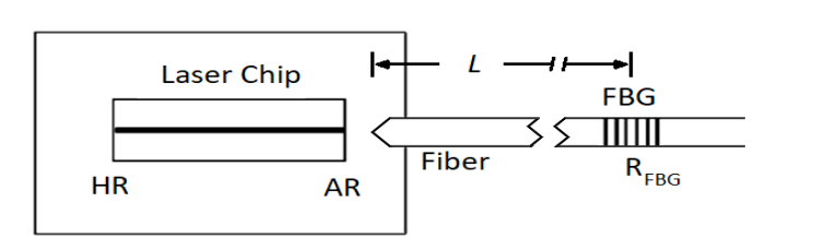 Fiber Bragg Grating (FBG) erabiliz kanpoko barrunbeko laser bat eraikitzea kostu baxuko laserren errendimendua hobetzeko irtenbide errentagarria da. 1. Irudian ikusten den bezala, FBG zuntz-buztan inskribatuta dago, normalean igortzen duen txiptik gertu, kanpoko barrunbeko laser bat osatuz.